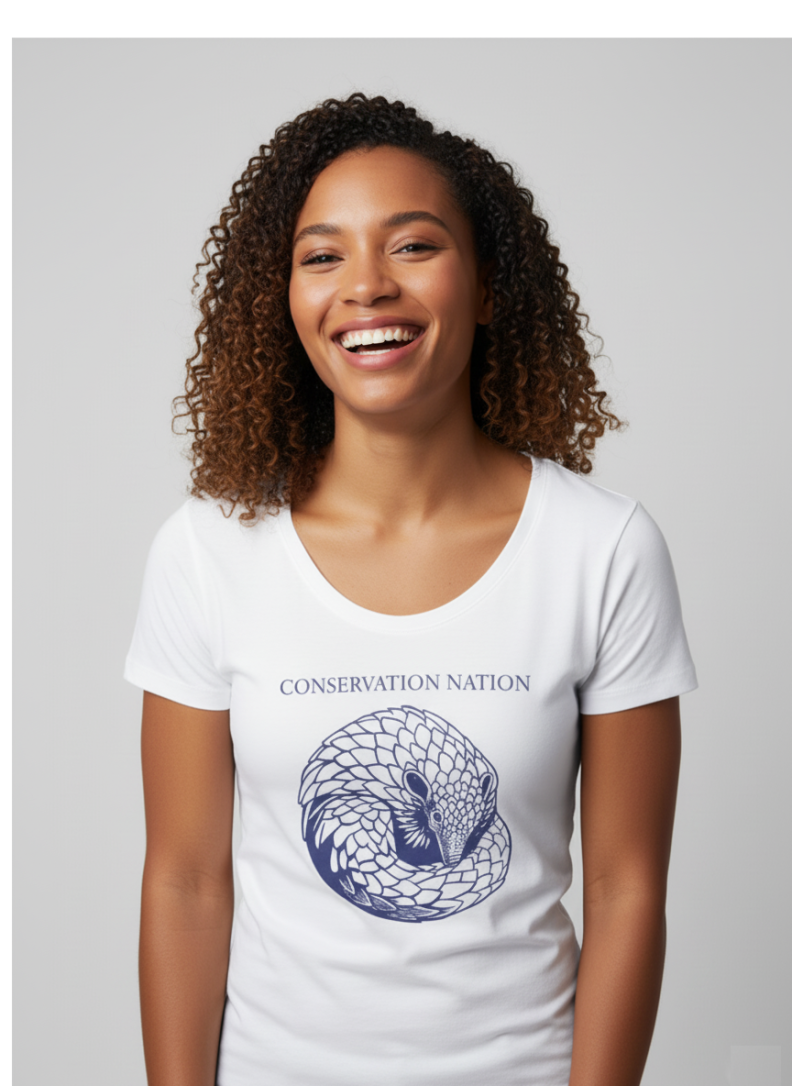 Conservation Nation Pangolin Illustrated Graphic t-shirt, 100% cotton, ladies